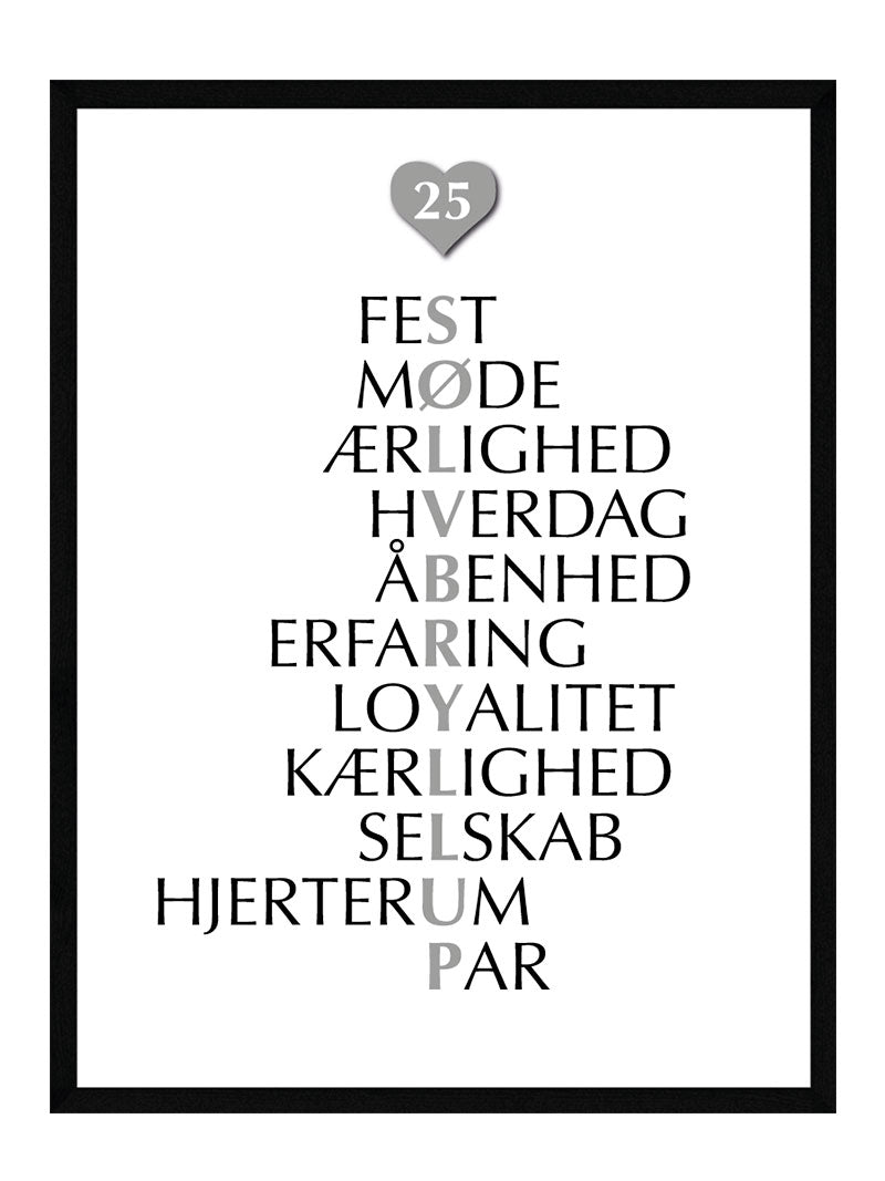 Vil du gerne have foreviget mindet om jeres fantastiske dag? eller har du måske en ven, veninde eller et familie medlem der har haft et langt ægteskab, så er denne sølvbryllup plakat den helt rette gave for dig at give.