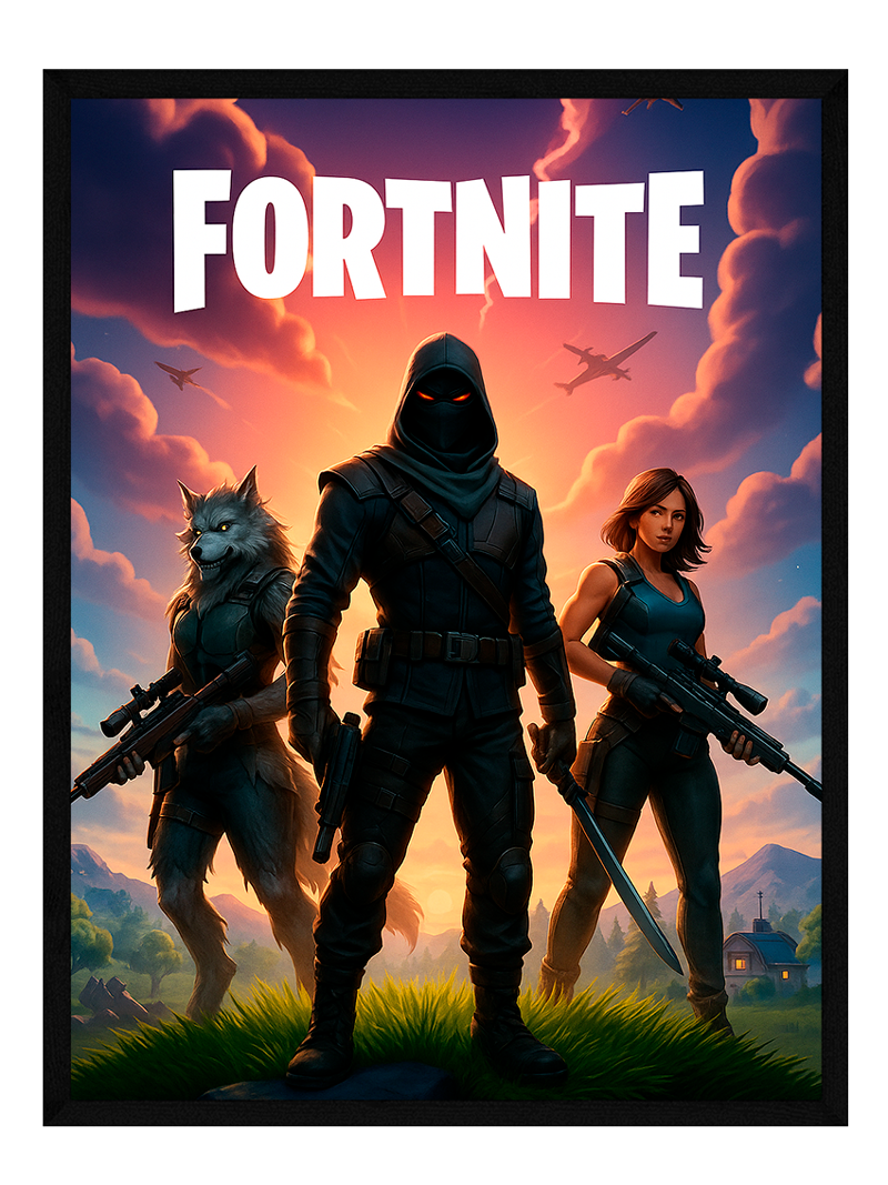 Bring action, farver og eventyr ind i rummet med en Fortnite plakat, der fanger energien fra det ikoniske spil. Denne plakat er perfekt til alle, der elsker Fortnite-universet – uanset om det er børn, teenagere eller voksne gamere. Med stærke farver, detaljerede figurer og et episk motiv bliver væggen hurtigt til en del af spillet.