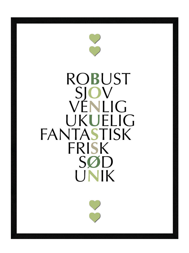 Designet på bonussøn plakaten er holdt helt simpelt, så de dejlige sætninger kan komme i fokus og modtageren af plakaten vil kunne nyde de dejlige ord dag efter dag