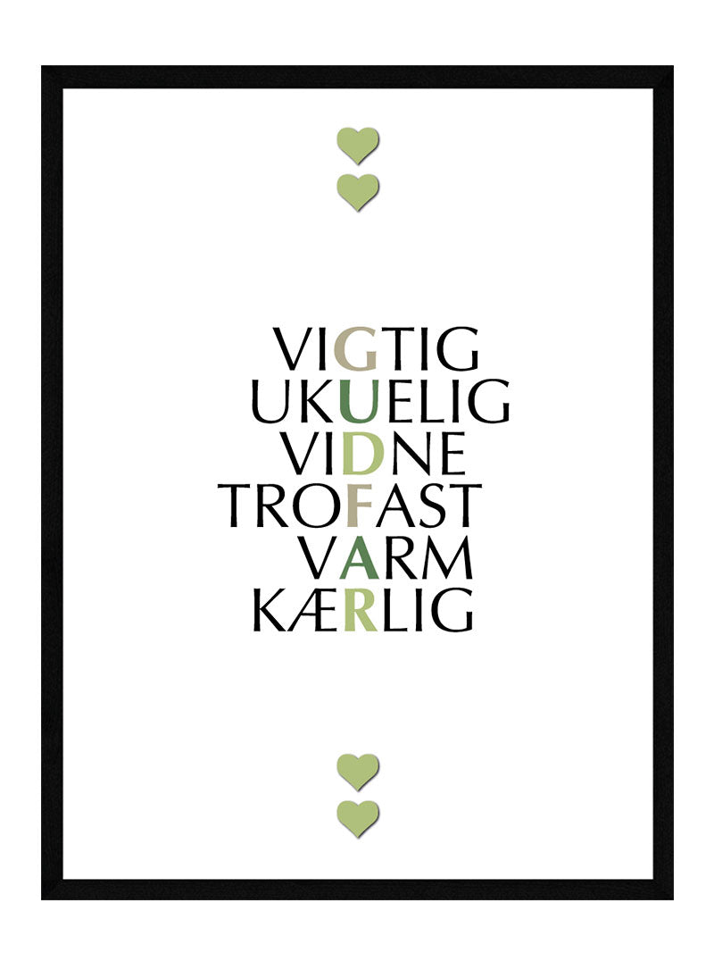 Designet på Gudfar plakaten er holdt helt simpelt, så de dejlige sætninger kan komme i fokus og modtageren af plakaten vil kunne nyde de dejlige ord dag efter dag