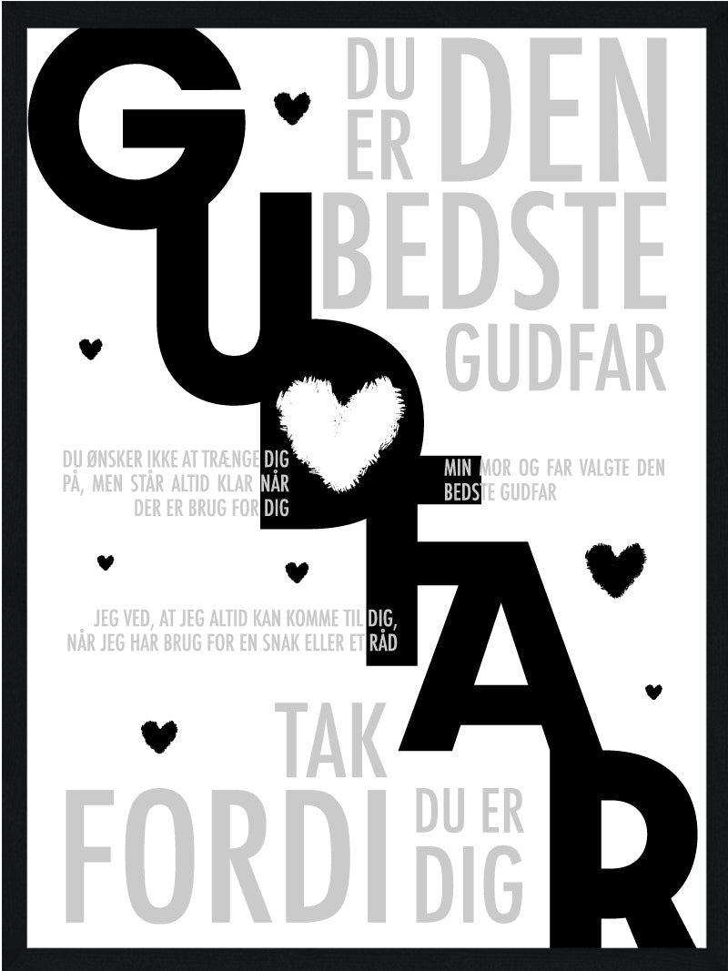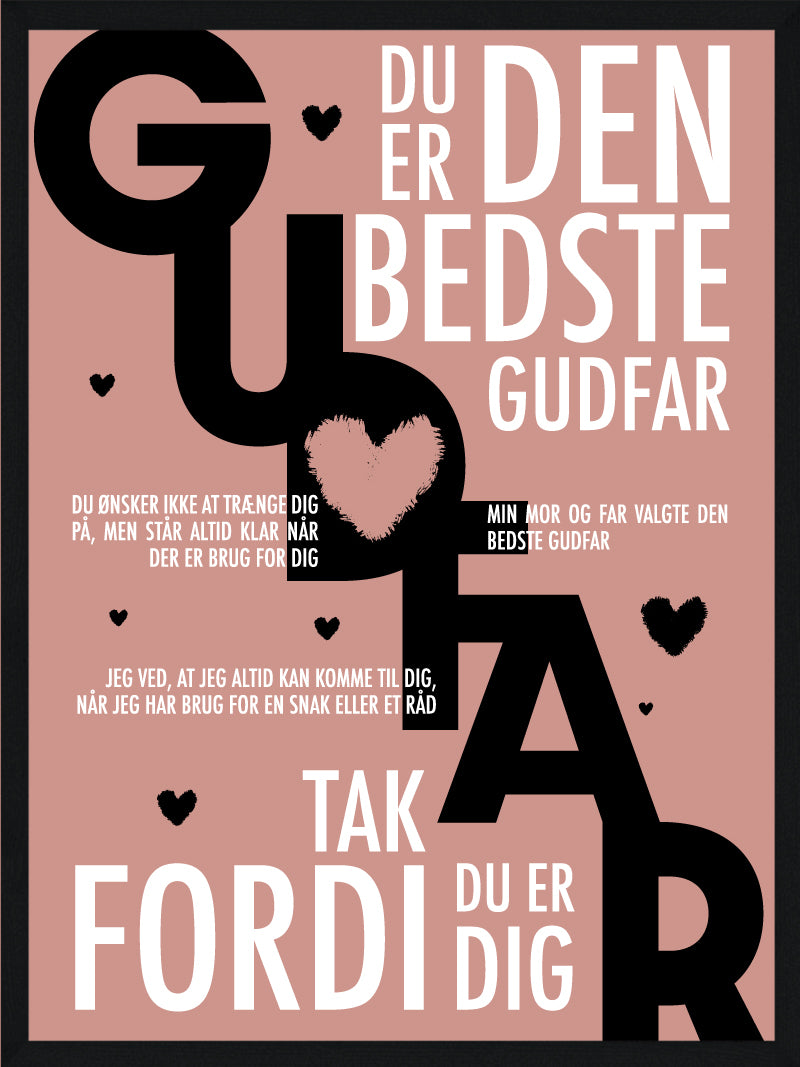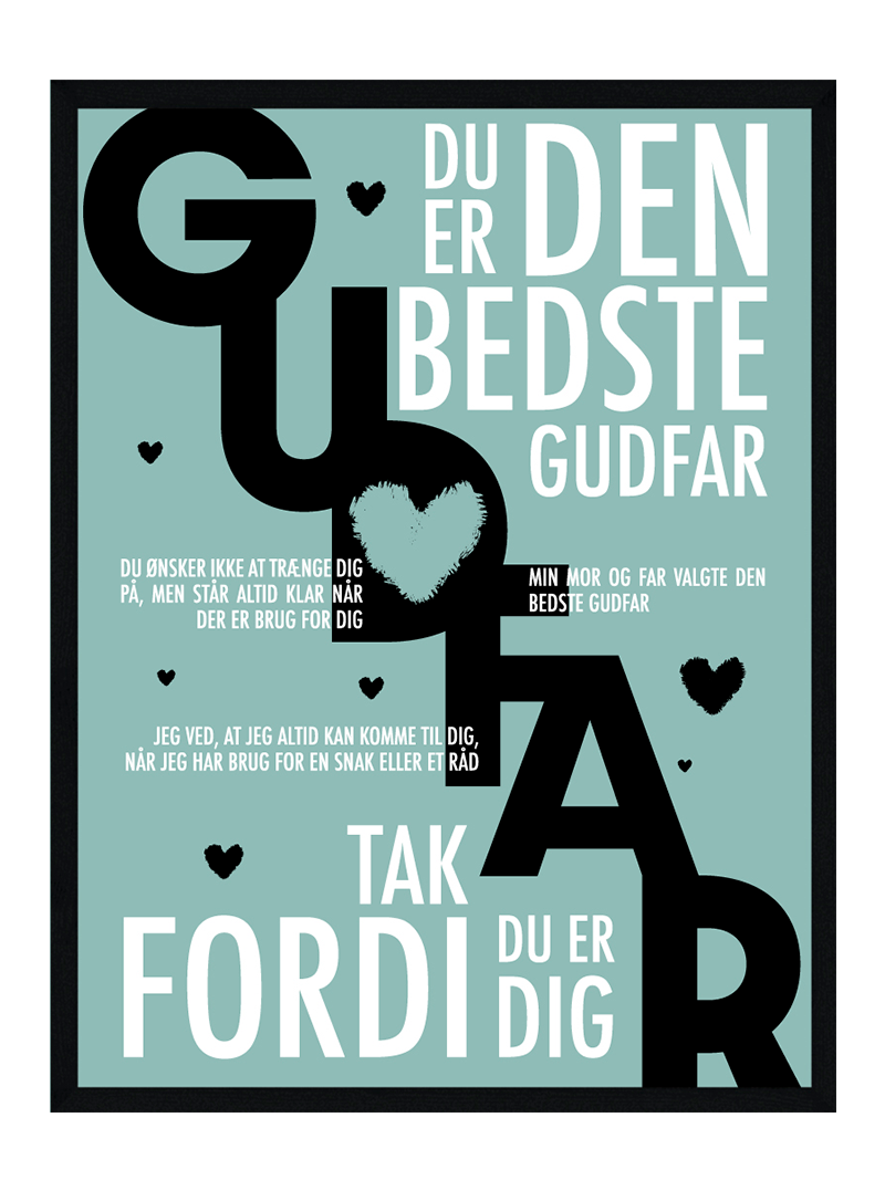 Vores flotte Gudfar plakat er en helt personlig gave og siger alle de søde ting til din Gudfar som du i hverdagen har svært ved at sige. Gudfar plakaten er på alle mulige måder den perfekte gave til din Gudfar som betyder alt for dig.