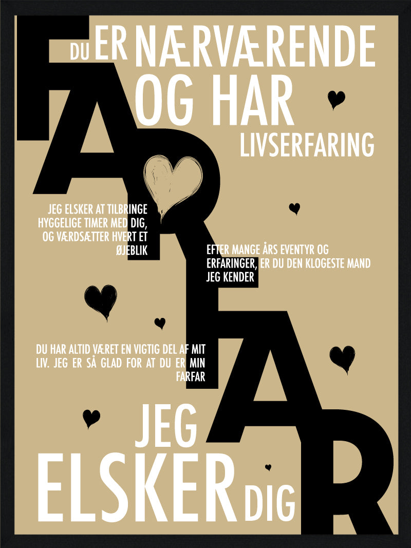 Vores flotte Farfar plakat er en helt personlig gave og siger alle de søde ting til din Farfar som du i hverdagen har svært ved at sige. Farfar plakaten er på alle mulige måder den perfekte gave til din Farfar som betyder alt for dig.