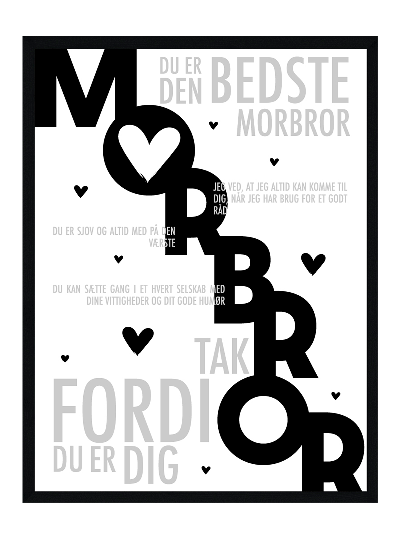 Vores flotte Morbror plakat er en helt personlig gave og siger alle de søde ting til din Morbror som du i hverdagen har svært ved at sige. Morbror plakaten er på alle mulige måder den perfekte gave til din Morbror som betyder alt for dig.