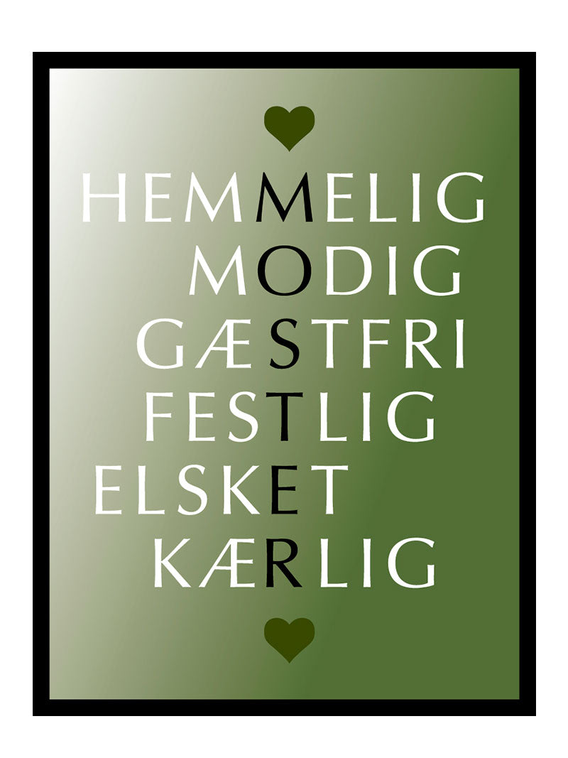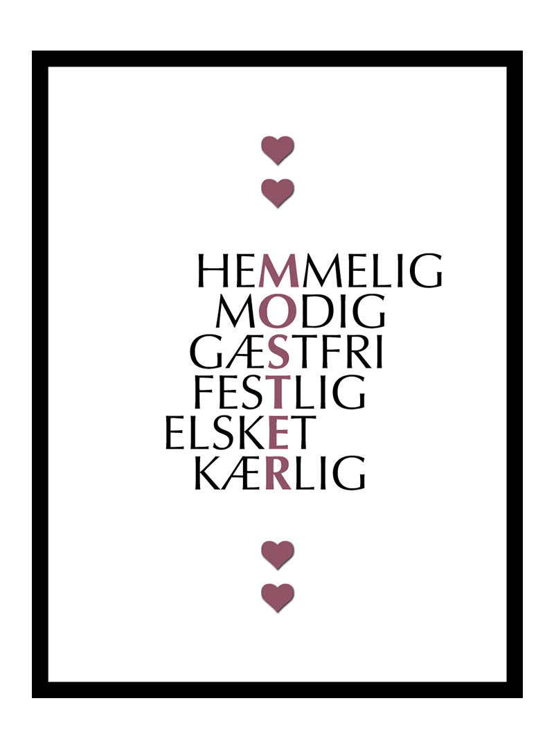 Designet på moster plakaten er holdt helt simpelt, så de dejlige sætninger kan komme i fokus og modtageren af plakaten vil kunne nyde de dejlige ord dag efter dag