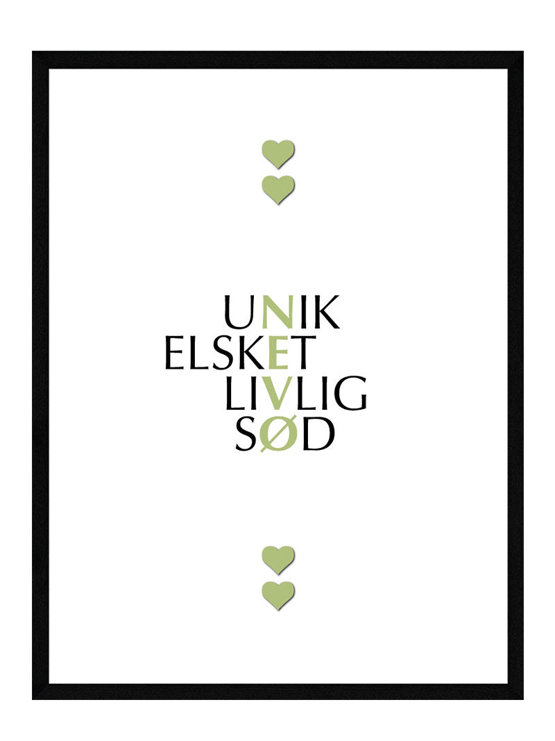 Designet på nevø plakaten er holdt helt simpelt, så de dejlige sætninger kan komme i fokus og modtageren af plakaten vil kunne nyde de dejlige ord dag efter dag
