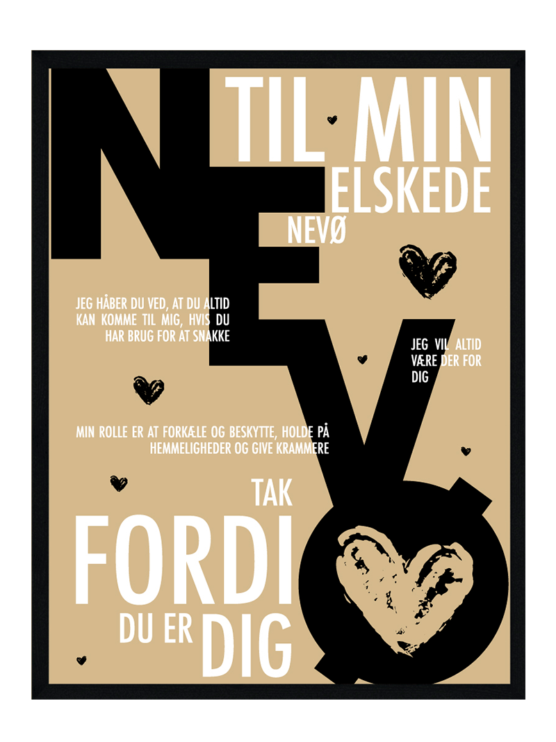 Den perfekte gave til verdens bedste Nevø. Synes du din Nevø fortjener lidt anerkendelse, men har du svært ved lige at få sagt, hvor meget han betyder for dig? Så er vores populære Nevø plakater måske noget for dig.