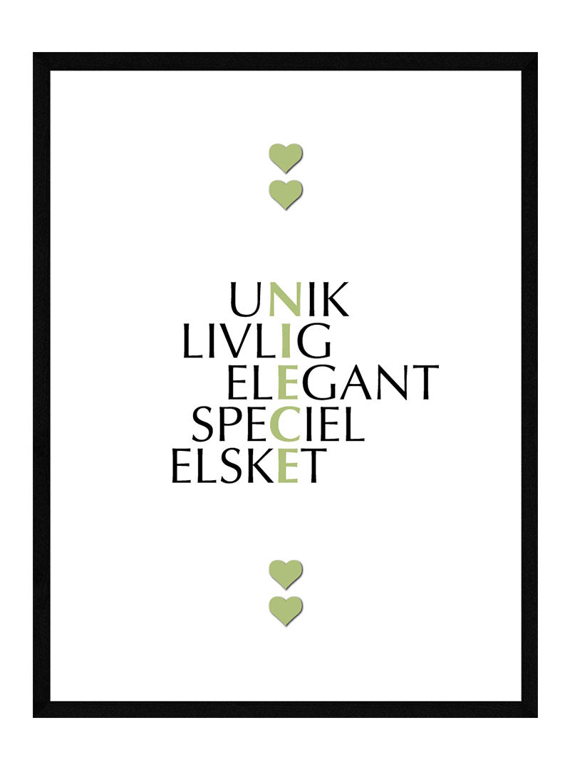 Niece plakaten findes i 6 forskellige størrelser og kan monteres i en af vores kvalitetsrammer.