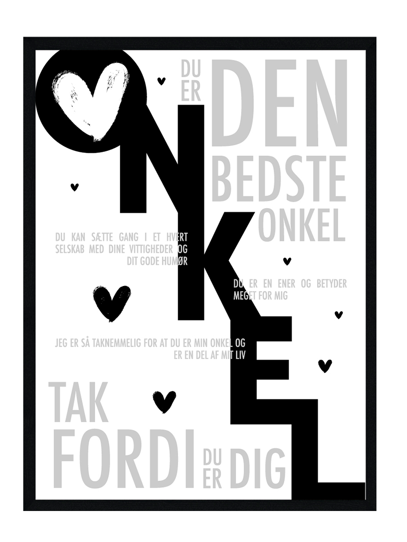 Den perfekte gave til verdens bedste Onkel. Synes du din Onkel fortjener lidt anerkendelse, men har du svært ved lige at få sagt, hvor meget han betyder for dig? Så er vores populære Onkel plakater måske noget for dig.