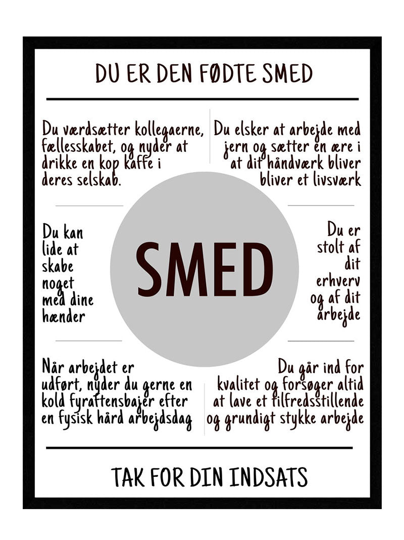 Kender du en Smed der gør en forskel og fortjener at få lidt anerkendelse? Så har vi den perfekte idé at give... nemlig vores Smed plakat.