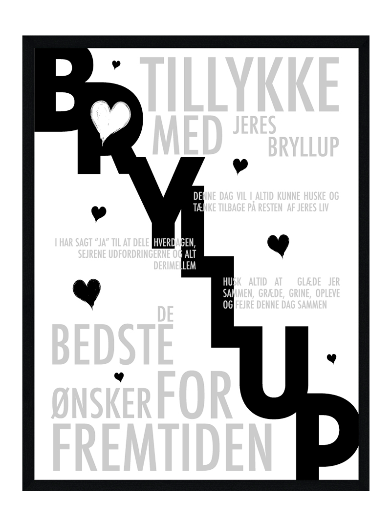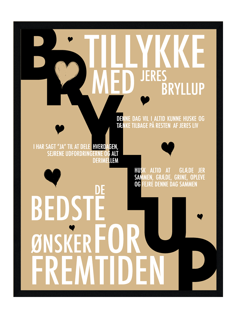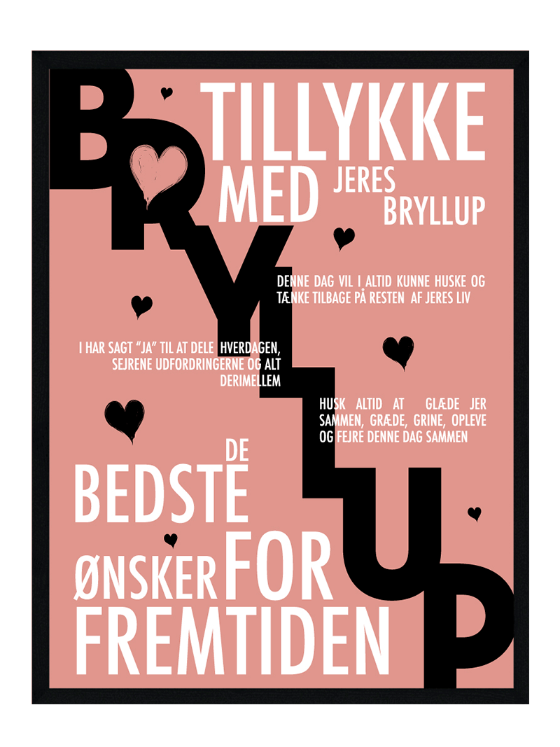 Vil du gerne have foreviget mindet om jeres fantastiske dag? eller har du måske en ven, veninde eller et familie medlem der skal giftes, så er denne bryllupsplakat den helt rette gave for dig at give.