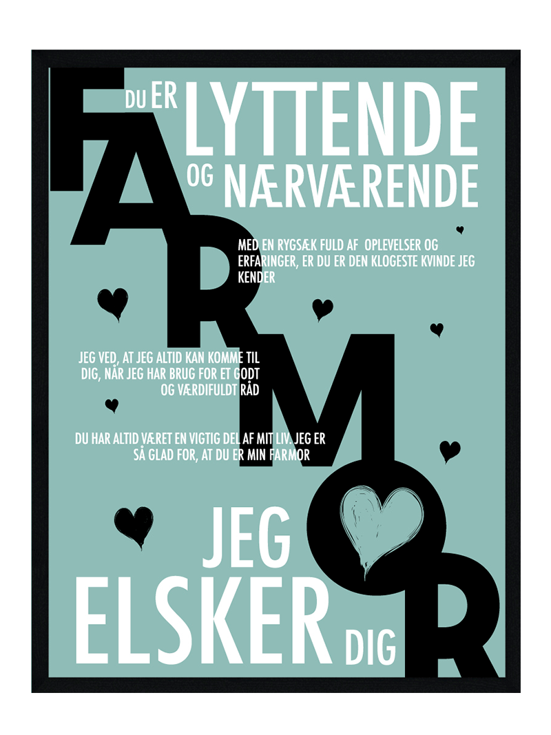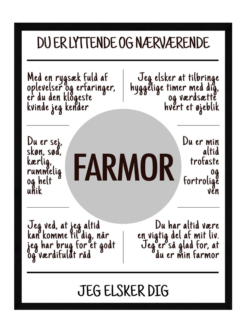 Så hvis du også mener, at din Farmor er en helt speciel person i dit liv og du gerne vil fortælle hende, at du tænker på hende og mindes alle de gode minder i har haft, så er denne Farmor plakat lige noget for dig.