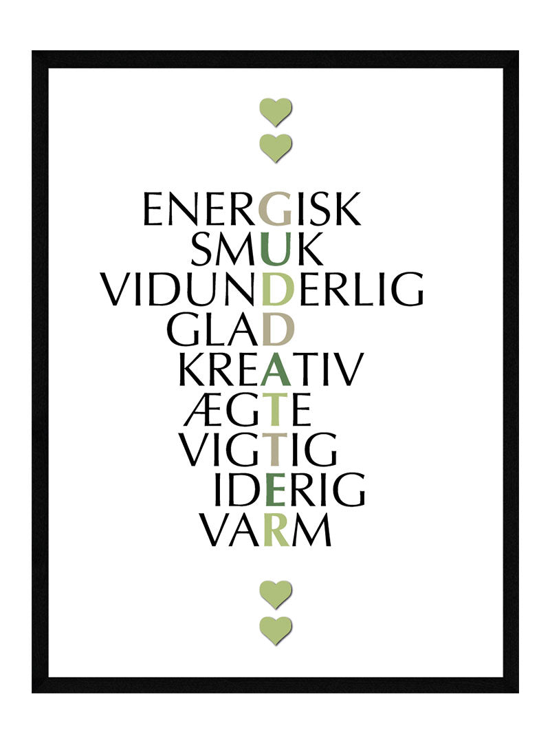 Kvaliteten af vores guddatter plakat er helt i top, og de bliver trykt på 260 gram tykt Canon papir. Alle vores plakater trykkes på en mat overflade, så du undgår genskær i plakaten.