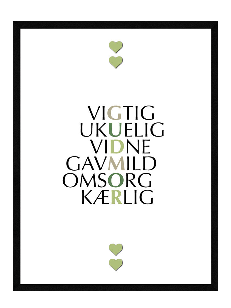 Designet på Gudmor plakaten er holdt helt simpelt, så de dejlige sætninger kan komme i fokus og modtageren af plakaten vil kunne nyde de dejlige ord dag efter dag