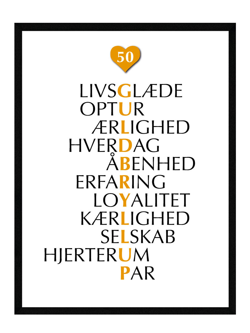Vil du gerne have foreviget mindet om jeres fantastiske dag? eller har du måske en ven, veninde eller et familie medlem der har haft et langt ægteskab, så er denne guldbryllups plakat den helt rette gave for dig at give.