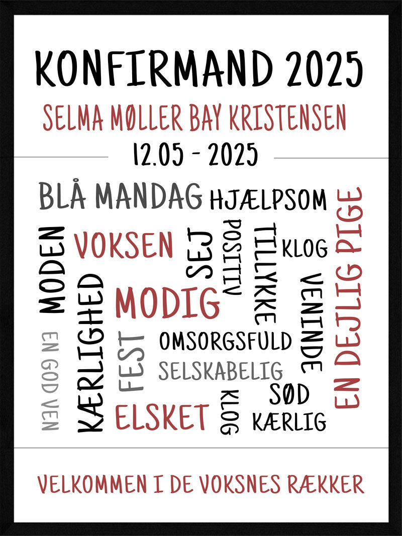 Vores konfirmand plakater siger de helt rette ting, som man måske i en travl hverdag selv har svært ved at få sagt, og derfor en rigtig god måde at fortælle hvad man tænker om den kommende konfirmand.