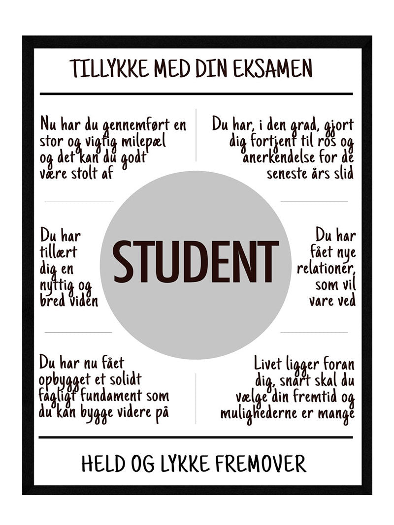 Vil du gerne gøre denne dag helt speciel for en student du kender og anerkende personen for det hårde arbejde der er blevet lavet, så er denne personlig studenter plakat helt perfekt.