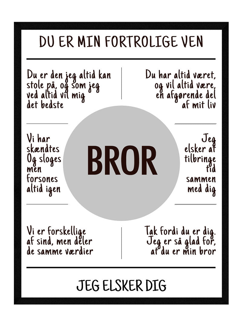 Har du den bedste bror i verden, og vil du gerne fortælle ham, hvor meget pris du sætter på jeres relation til hinanden, så er vores bror plakat måske noget for dig.