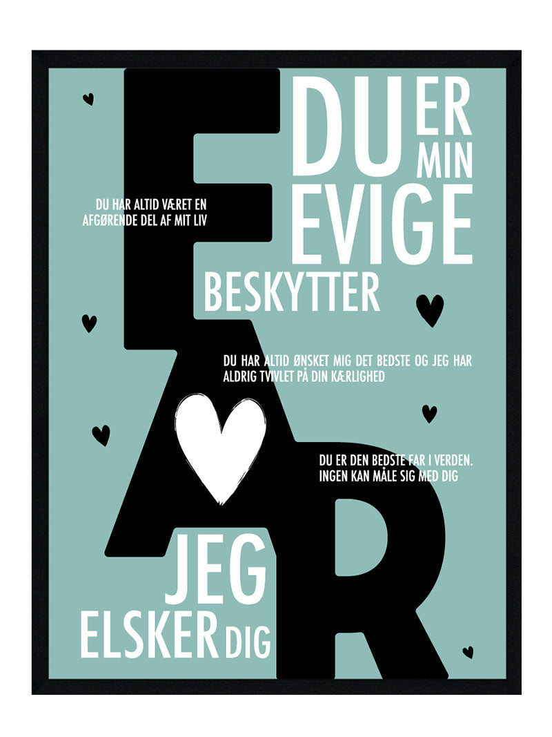 Kvaliteten af vores far plakat er helt i top, og de bliver trykt på 260 gram tykt Canon papir. Alle vores plakater trykkes på en mat overflade, så du undgår genskær i plakaten.