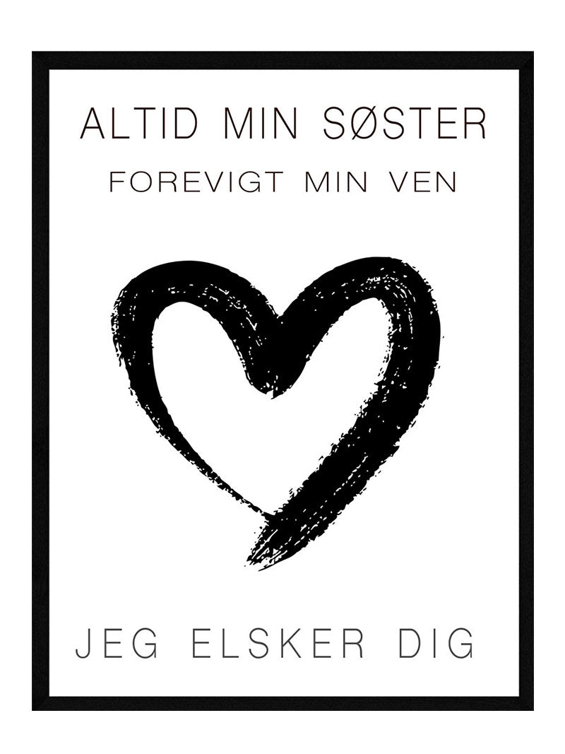 Vil du gerne gøre din søster glad og give hende en god gave, men har altid svært ved at finde ud af præcis hvad du skal købe til hende? Vores flotte søster plakat er en helt personlig gave og siger alle de søde ting til din søster eller søstre som du i hverdagen har svært ved at sige. Søster plakaten er på alle mulige måder den perfekte gave til din søster.